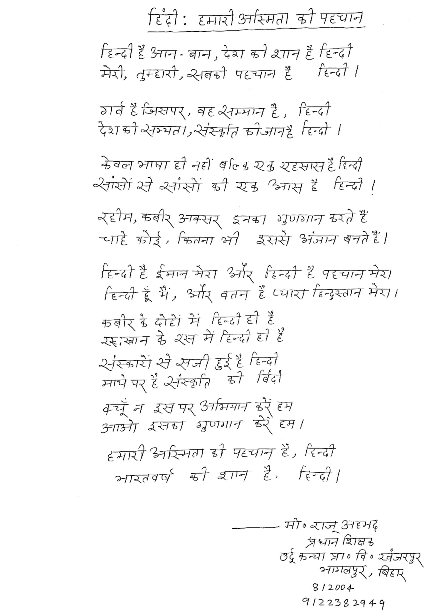 बहुत प्यारा बहुत न्यारा हिंदी वाणी यह हमारा !मन को मोहित कर ले हिंदी वाणी यह हमारा!बहुत प्यारा बहुत न्यारा[...]