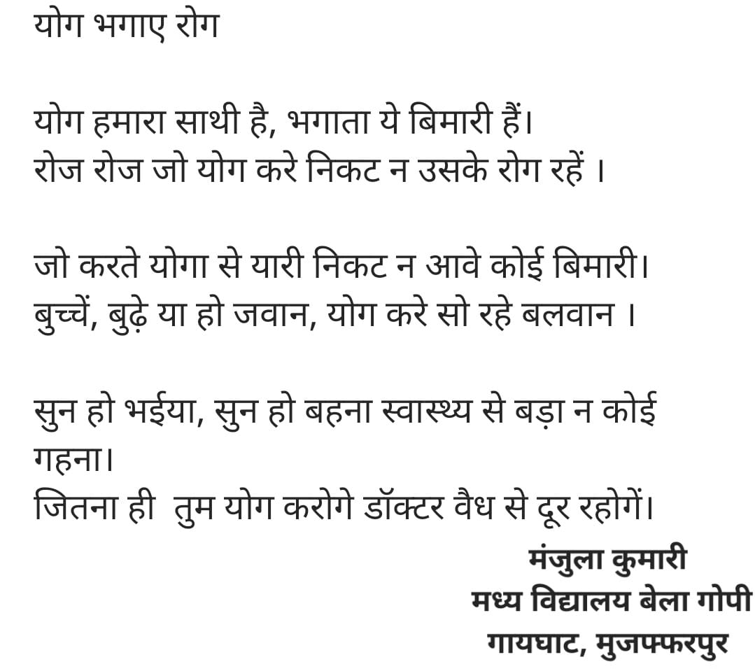 योग भगाए रोग-मंजुला कुमारीयोग भगाए रोग-मंजुला कुमारी